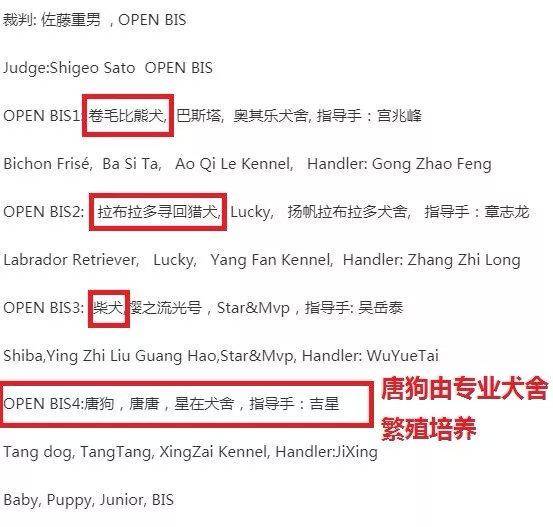 我們先來看看這隻奪冠的唐狗,它叫“唐唐”,是由一家犬舍培養,負責人叫“吉星”。