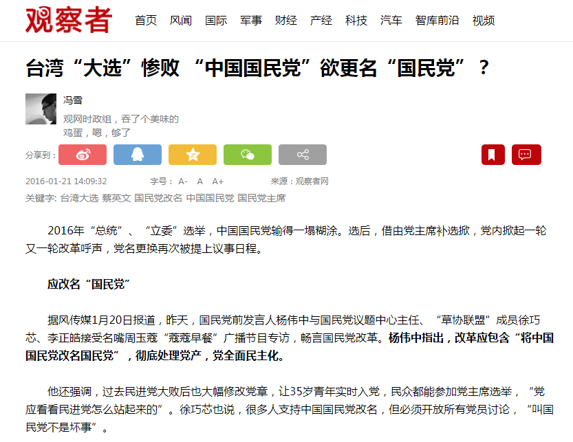 而且,考慮到蔣經國死後,其“大中國”路線被李燈灰等人徹底背叛的情況,現在國民黨甚至不能隨便奉1988年前的國民黨為“正溯”,否則你怎麼解釋一個明明掛着“中國國民黨”、名字裏有“中國”二字的黨派,卻在執行分離主義路線呢?