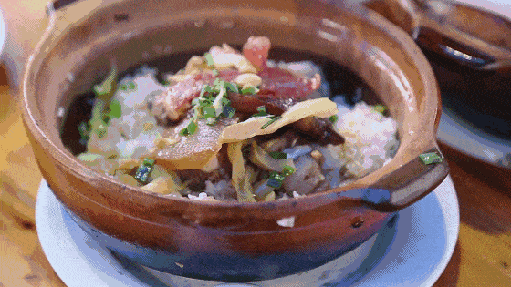 無論鋪在煲仔飯表面的是老派的臘腸、排骨,還是新派的田雞、魚腩和芝士龍蝦,任憑它們在火上歡愉,底下總有粒粒分明的米飯,恭候着食材的油脂。高温考驗下,油脂穿過大米間隙,兩者在煲底交融成煲仔飯經典的鍋巴。