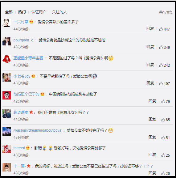 消息傳回國內,網友們紛紛表示:等等,不是已經拍過了嗎?叫《愛情公寓》啊。
