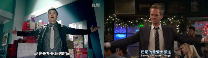 首先是最開始曾小賢的禮物派送梗,抄襲how i met your mother S06E 12