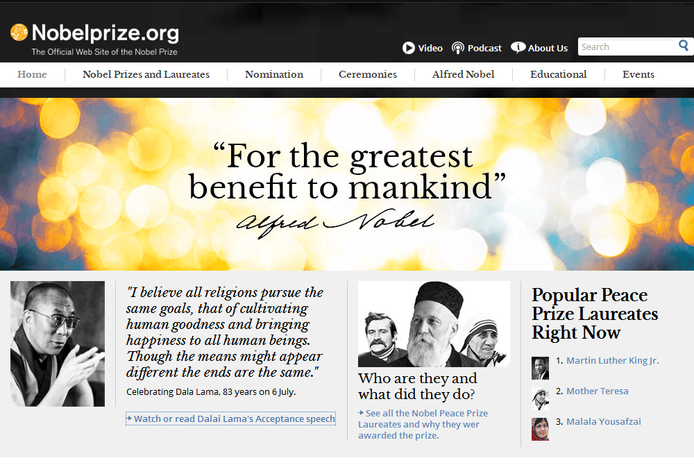 2018年7月6日[4],瑞典人在諾貝爾獎官網為達賴喇嘛慶生