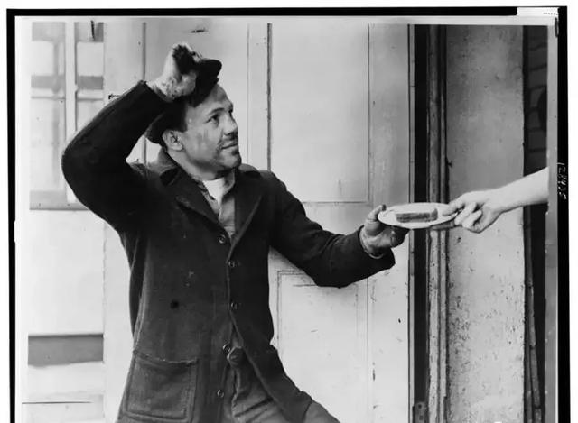 1935年,一名失業男子躺在城市碼頭,看似體面的大衣已經破敗不堪。
