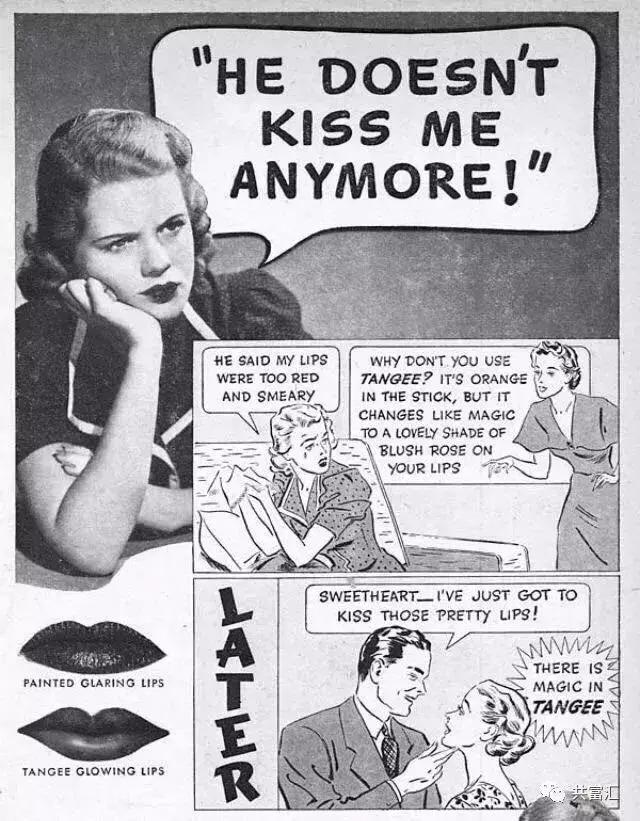 大蕭條期間的口紅廣告:“他不再親我了!”刺激着女人們無論如何都要打扮自己。