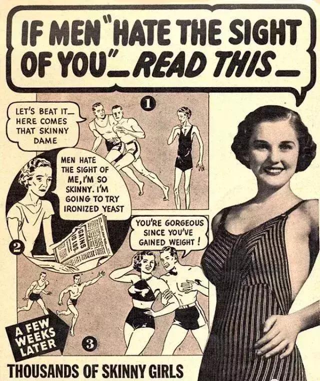 由於人們普遍變瘦,增肥藥也有了市場:“瘦女孩增肥10-20磅!立即見效!”