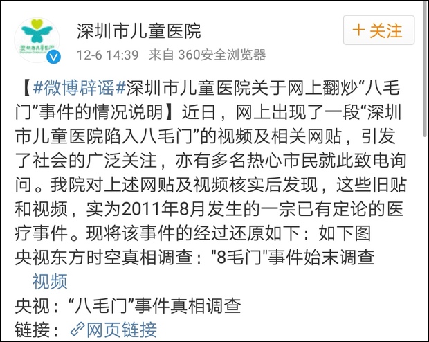 19年都快到了,還在為11年的謠言闢謠,深圳市兒童醫院也是真心累啊。