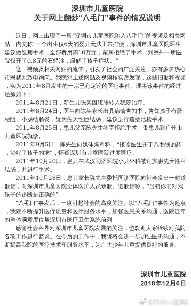 為此,深圳市兒童醫院今天再發聲明闢謠。