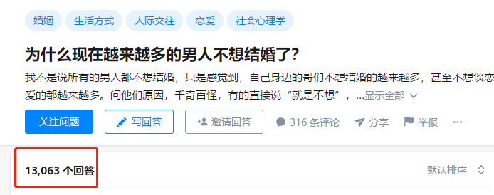 這些是從統計數字和研究案例裏的出的較為宏觀的結論,具體到每個深陷其中的個體(包括沒有性生活的我),則有着各自的辛酸。説到這裏又要貼出那個出現在《年輕人你別哭,你可知希望不會來》裏的知乎問題了,現在已經有超過13000個回答了。