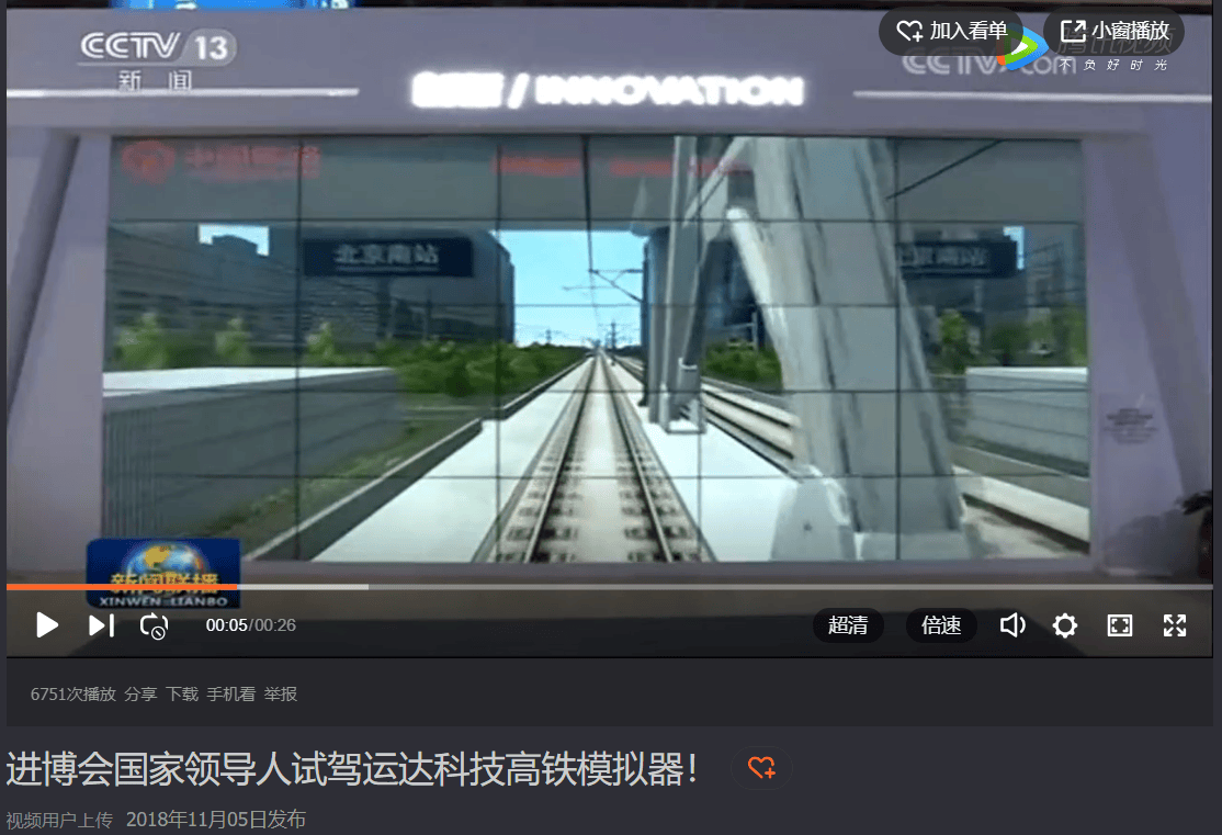 運達科技高鐵模擬器登上央視新聞 圖片來源:騰訊視頻截圖