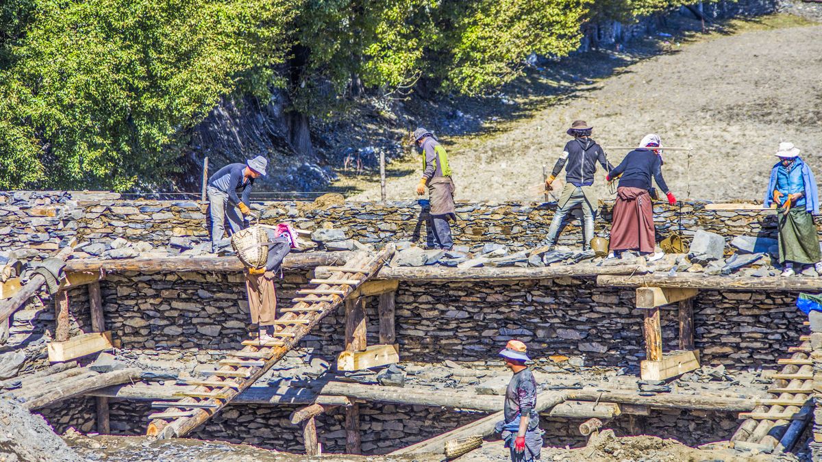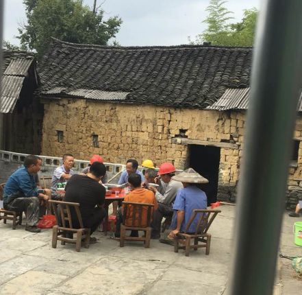 秋天再次來到岳父家幫忙蓋房子,姓石的石匠頭帶着8個壯工幹砌石、砌磚、上樑、掛瓦的技術活,岳父找的十幾個鄉親幫下手,小小工地一派忙活。