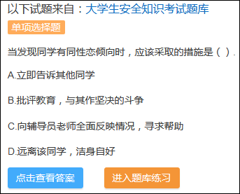 銀河觀點:大學生安全知識考試題庫涉同性戀試題點評
