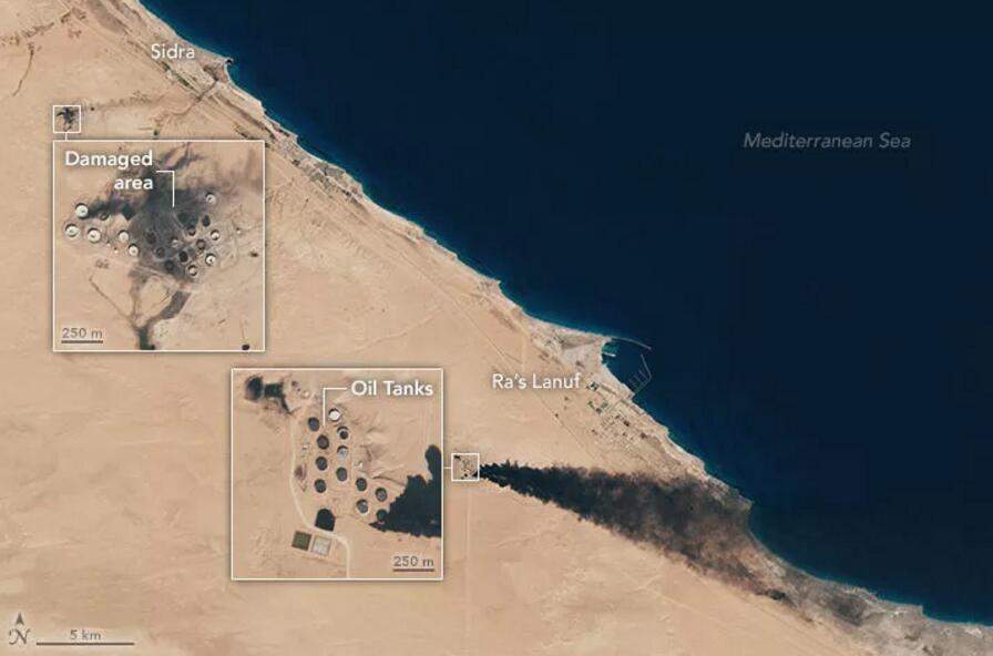 ·美國的衞星照片顯示,利比亞的油井遭受攻擊被損毀嚴重。