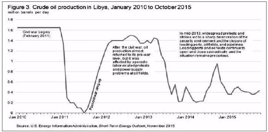 ·自卡扎菲下台後,石油產量在12-13年有一個回升期,到了第二次內戰開始就處在劇烈波動的時期了。