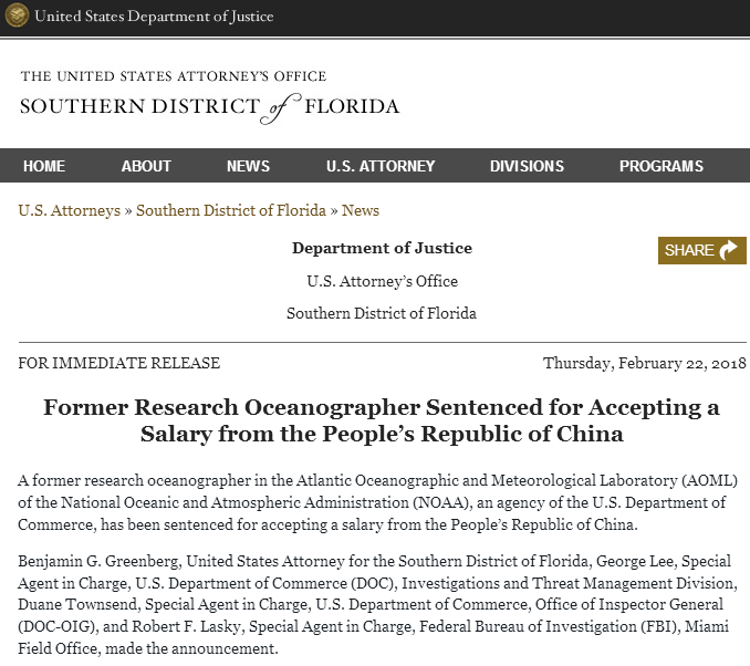 “千人計劃”,在國內也有很多身份,不過沒有任何證據表明他是FBI的目標。美國確實一次次顛倒黑白,也確實做了一樁樁“無端指責、捕風捉影、罔顧事實”的事情,但FBI的行動從來都是陽謀,FBI有自己的做事程序,逮捕可能沒有證據,但都是有指控、罪名可查,譬如上述所説的海洋專家、美籍華人王春,如何違反了美國法律被調查,美國司法部網站都能查到。