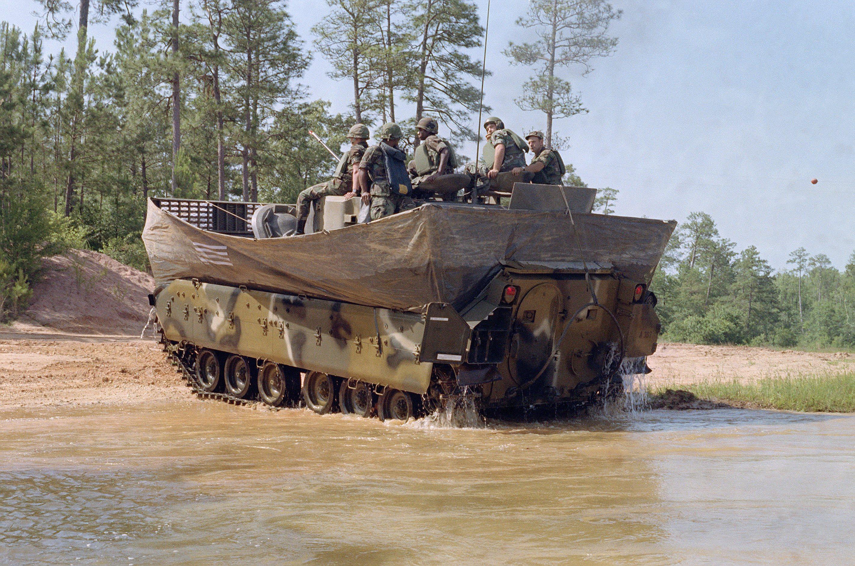 M2“布萊德利”則需要支起“帳篷”才能下水