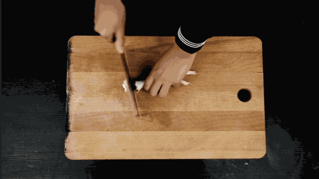 當然,也有雞爪脱骨機。把雞爪夾起,用骨刀切斷趾骨,沿着水平方向將趾骨帶出。再從上向下將雞爪附蹠骨表面的皮肉剝離,最後將雞爪附蹠骨切斷剔除。