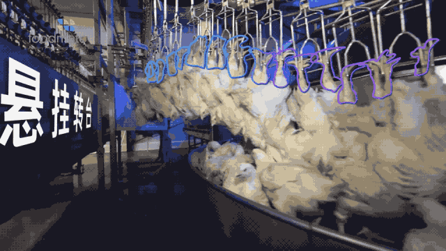 這是巴西的 belafoods 屠宰場,一條每小時處理 6000 只雞的屠宰流水線。