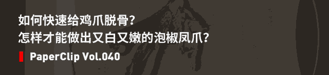 將雞爪煮至半熟,在背上劃三道口子,用手掰開皮,最後用牙齒啃咬下骨頭。五秒就可啃出一隻無骨雞爪,每人每天可以啃出 200 多斤。