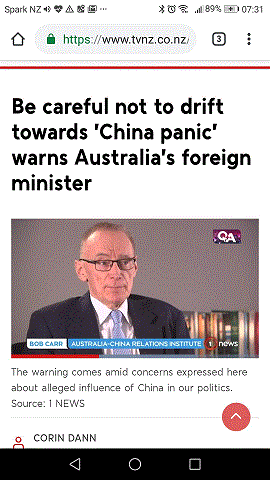 傳説這個世界有個專門針對中國的五眼聯盟,老大是當今世界的燈塔國,新西蘭是裏面的小弟弟。如果新西蘭的媒體跟着特郎普總統的腳步吆喝幾聲中國威脅,或者是宣稱新西蘭人民也站了起來什麼的,大概沒有人會覺得奇怪。令人驚訝的是日前澳大利亞外長BOB CARR,應該是前外長,作客新西蘭電視一台,警告別滑向中國恐慌症。澳前外長指出媒體發一條中國干預內政的新聞很容易上頭條,事實是中國將不可避免成為超級強權,比較那些超級強權比如美國,中國對於干涉別國內政是相當的MODERATE(不情願?),不要自己嚇自己,把這麼好的夥伴貿易關係搞砸了。
