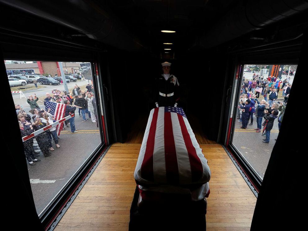 **ABC:**民眾在列車兩旁為老布什送行,並將他安葬在妻子和女兒旁邊老布什最後葬在得克薩斯州,他的靈位將在亡妻芭芭拉和3歲時死於白血病的女兒羅賓旁邊。