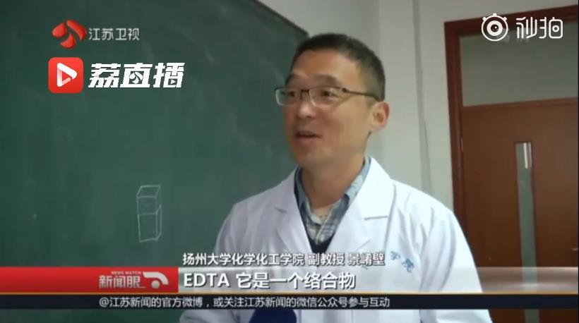 揚州大學化學化工學院副教授景崤壁告訴記者:“看着它(“一洗白”)説明書上的成分,沒有一個東西是可以美白的;但是它加了一個東西叫做EDTA,是一個絡合物。我們就懷疑它真正發揮‘美白’功效靠的是重金屬,也就是説用一個東西把重金屬絡合起來形成白色的東西,塗到皮膚上可以起到覆蓋的作用。”