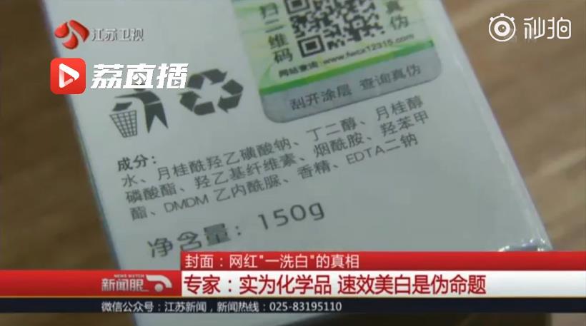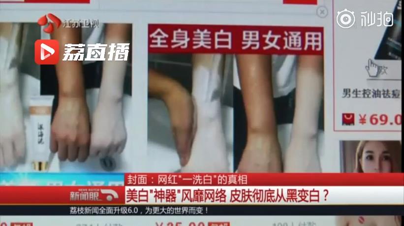 據江蘇衞視《新聞眼》日前報道,最近有多段視頻在社交媒體上爆紅,這些視頻無一不和一款名為“一洗白”的美白產品有關。