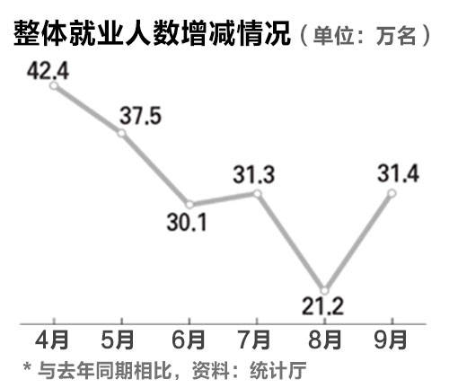 8月受頻繁下雨影響,建築業臨時工等就業崗位減少,因此整體就業人數的漲幅也大幅縮小。