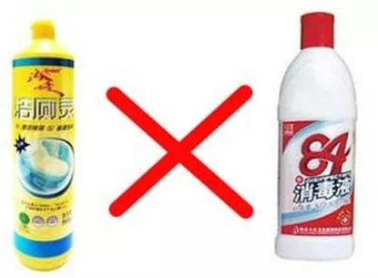 教訓:據安徽商報報道,蚌埠市兩名小孩,將潔廁靈和84消毒液混合倒入盆中,化學反應生成氯氣,引發一人死亡,多人中毒的悲劇。