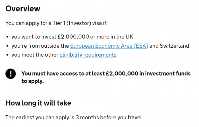 但是截至華聞君發稿時,在英國內政部關於200萬英鎊投資移民政策的相關網站上,依然沒有關於暫停這個項目的信息,只是表示如果申請人能投資200萬鎊、申請人來自歐盟以外並且滿足相關的要求,就能申請這個簽證。