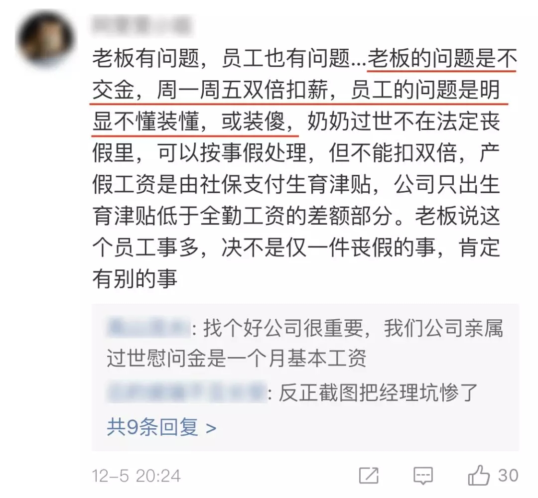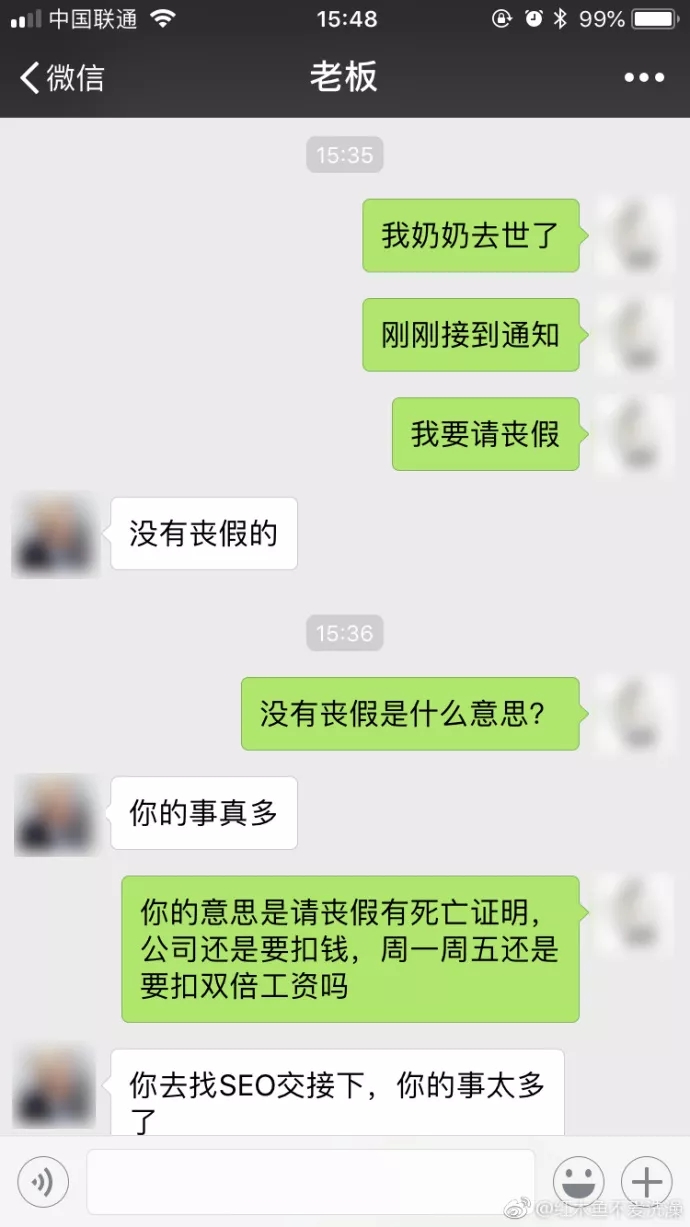 老闆説:“沒有喪假的”
