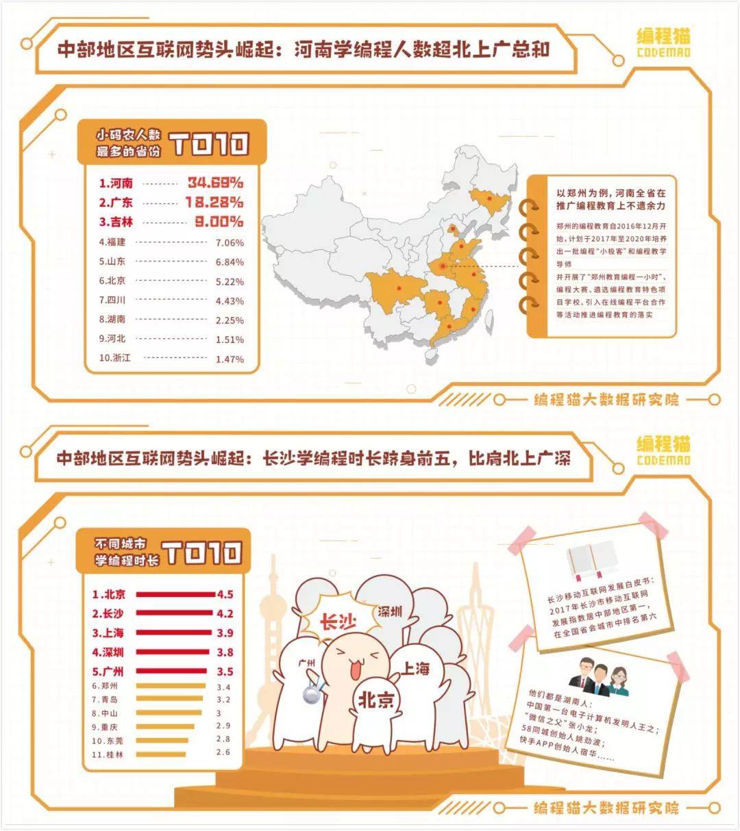1、河南學編程人數超過北上廣總和,以34.69%雄居第一,遠超排名第二的廣東,原因在於河南全省在推廣編程教育上正不遺餘力。