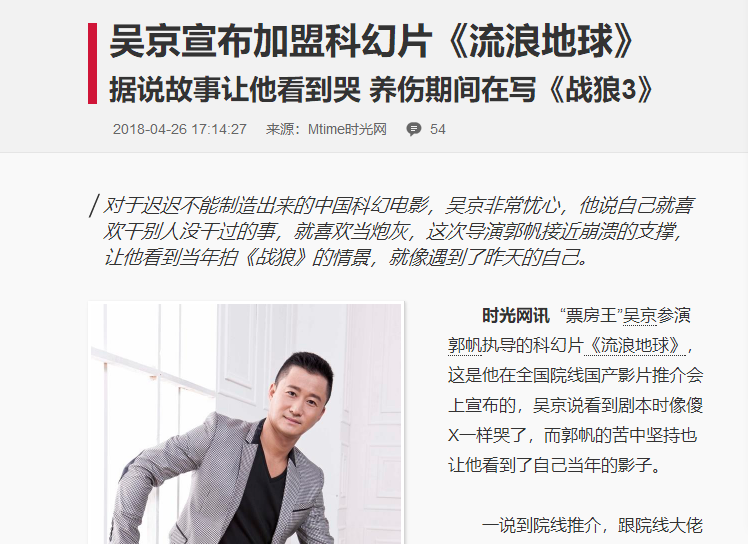 然後吳京和電影《流浪地球》發生聯繫是在什麼時候呢?