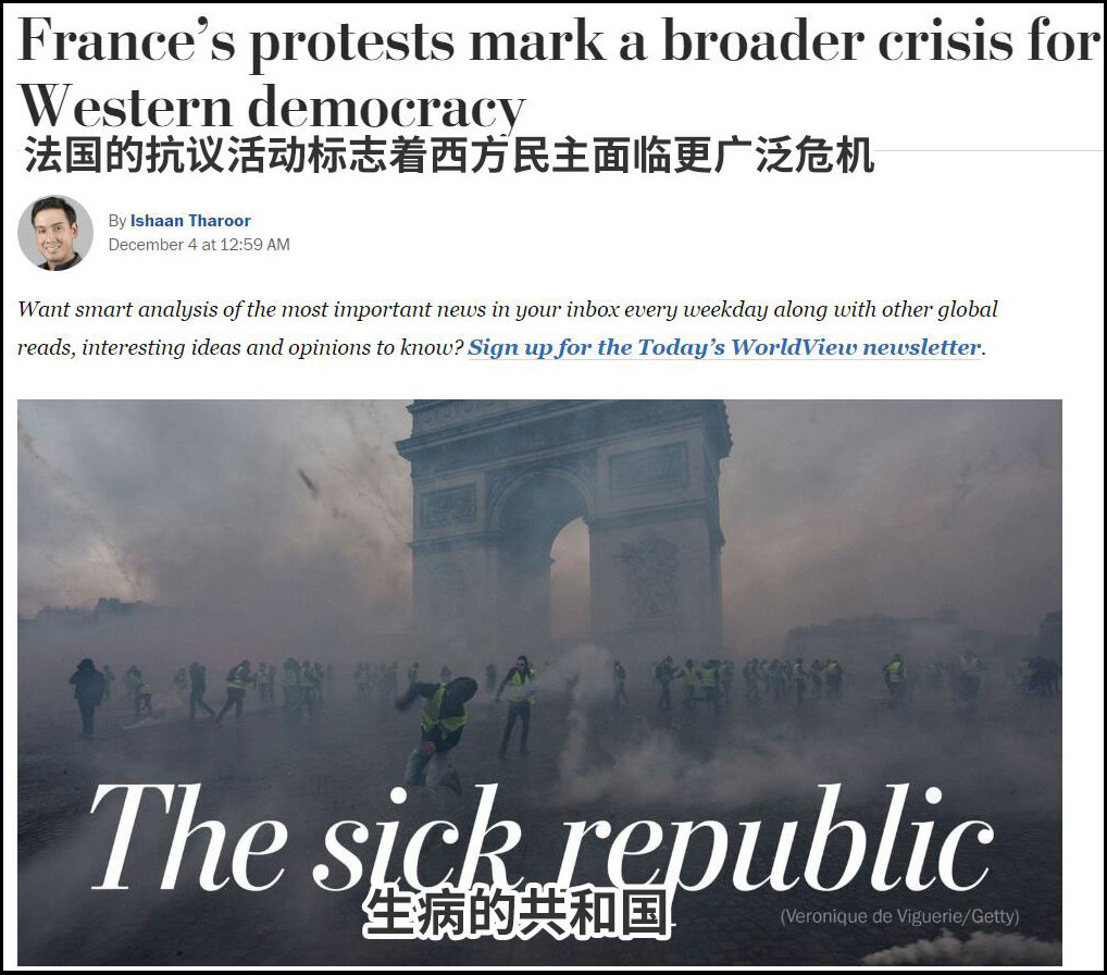 法國“黃背心運動”已經進入第四周,且有擴大並“越演越烈”之勢(至少也在思想和價值觀領域)。無論西方媒體怎麼説其背後是極右極左勢力在推動,但核心的一點是法蘭西人民失去經濟生活的可持續。這是無可置疑的。