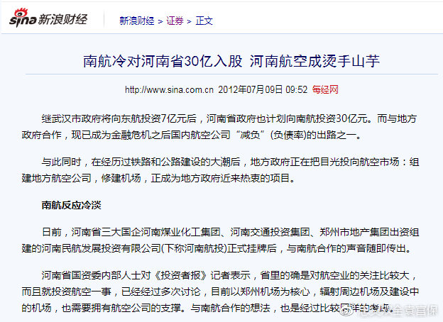 首先,深航和南航的兩次合作中,河南出資方始終沒有得到公司的控制權,甚至沒有參與決策的權力,再甚至沒有監察權。“吃你的飯,不聽你的話。”是這些地區性航司的合作原則。