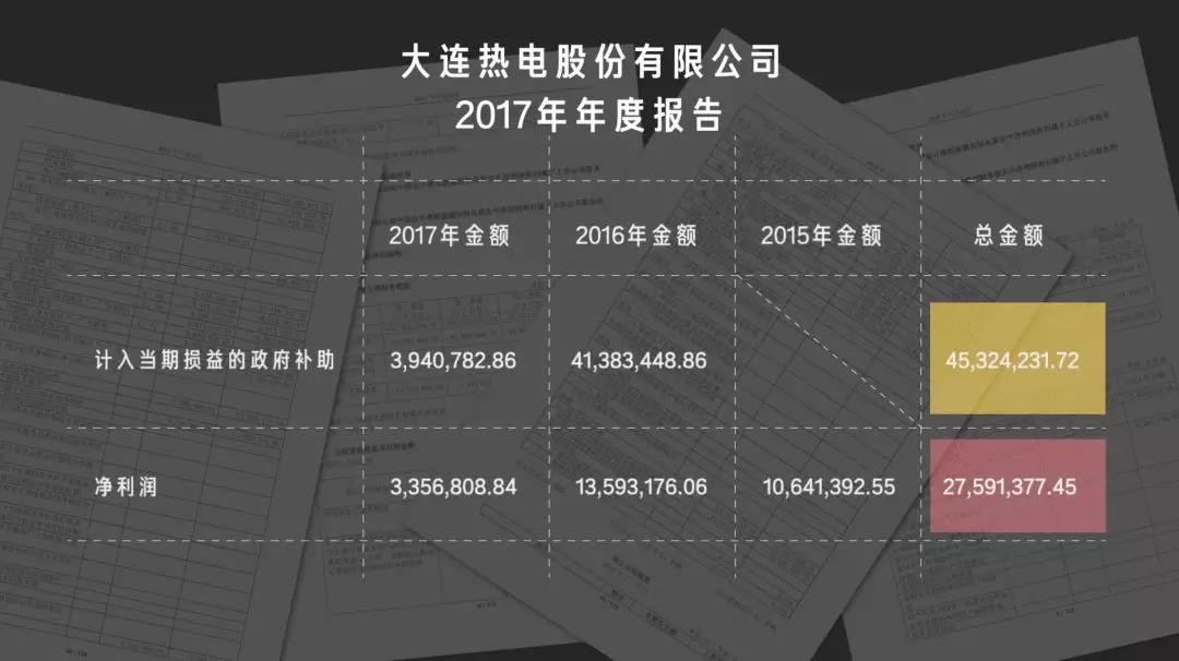 負責全市 35% 集中供暖的大連熱電,2015-2017 年在政府補貼了 4500 萬的情況下淨利潤只有 2700 萬,實際上還是虧損。