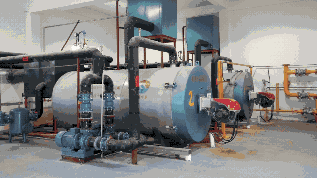 鍋爐房裏的熱水鍋爐可以在 1.25MPa 的高壓下,燒出 130℃ 的熱水,一台 14 兆瓦的熱水鍋爐可以供暖 2500 户。