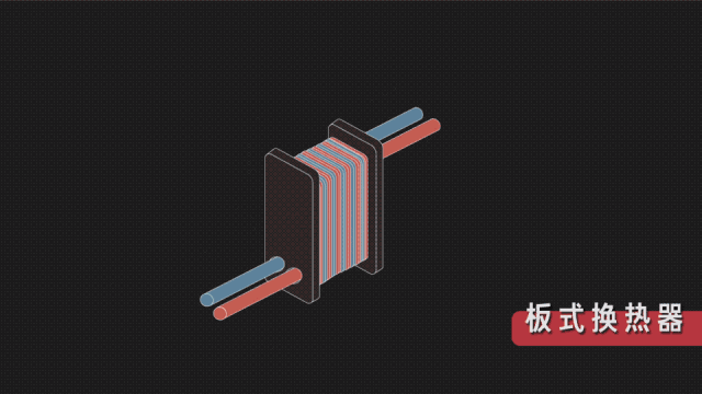 板式換熱器由內部可流水的金屬板片疊加構成,一級管網的熱水和二級管網的冷水間隔着流經各個金屬板片,不會直接混合,前者只通過金屬板片加熱後者。
