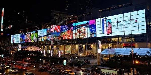 泰國曼谷的曼谷大道世界最大的電子屏上投放了廣告,廣告鋪滿整條街道,非常壯觀:
