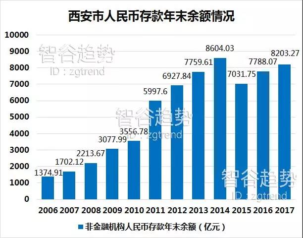 當年末,西安的非金融機構人民幣存款餘額只有7031.75億元,相比2014年蒸發了1572.28億元。簡單一句,錢給這座城市投了不信任票,資本在加速逃離。
