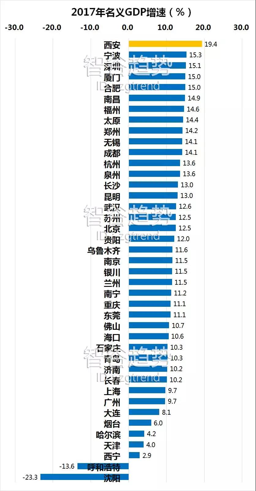 僅僅一年時間,西安的名義增速飆至全國41個重點城市的第一。