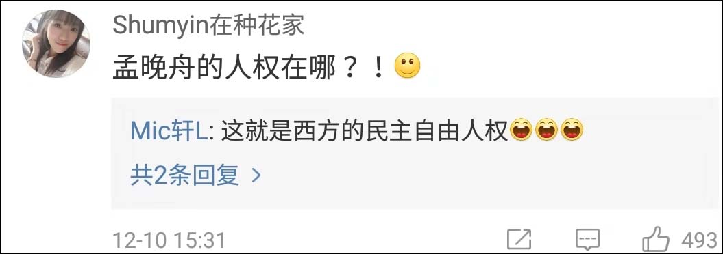 孟晚舟女士的哪些人權遭到了侵害?中國外交部給出了答案: