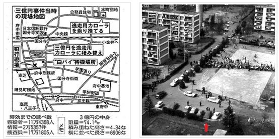 在東京都府中市的路上,裝着現金約3億日元的運鈔車,連車帶錢被騎着摩托警車的假警察搶劫的“3億日元事件”,到本月10日已滿50年了。這件案件作為盜竊事件被搜查,到1975年時效結束至今尚未偵破。按照現在的價值已達到30億元,如此巨大的被盜金額,明目張膽的犯罪手法,給社會帶來了巨大沖擊,因此成為各種小説、電影和漫畫的素材。從這件事發生當時對事件取材的原讀賣報紙的記者那裏瞭解到,當時搜查的內幕,有傳聞説這件案子是由“警察兒子所犯”。