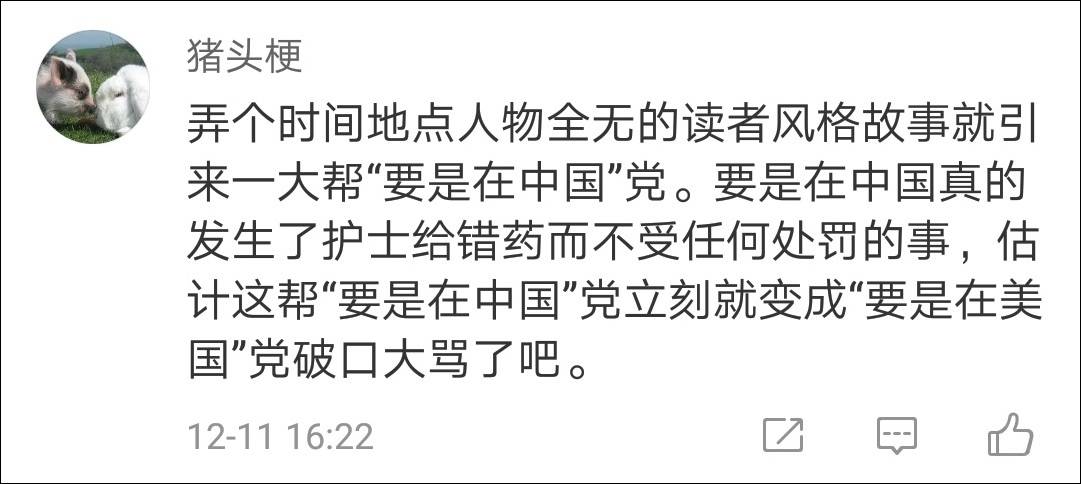 一位美國護士發錯藥之後……這樣的餿雞湯販賣的是幾個意思_風聞