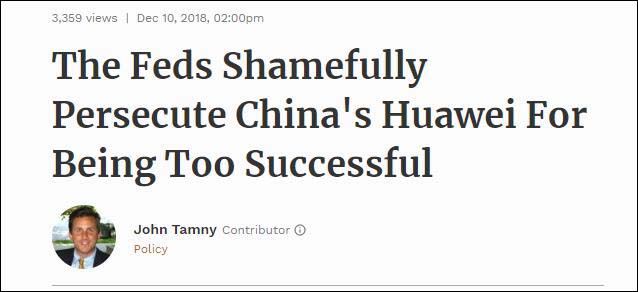 這篇是福布斯的一篇評論文章,題目叫做《美國政府可恥地迫害中國華為,只因華為太成功》,寫得很有意思,大家一起看看,下面是文章的中文翻譯。