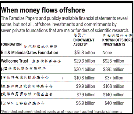 在看完了1340萬份文件,採訪了各大相關人士後,《科學》雜誌驚奇的發現,世界上有名的慈善基金會們,在政府免税的前提下,不僅依舊利用離岸基金賬户投資賺錢避税,並且還投了石油、煙草這種與其宗旨完全相悖的項目。
