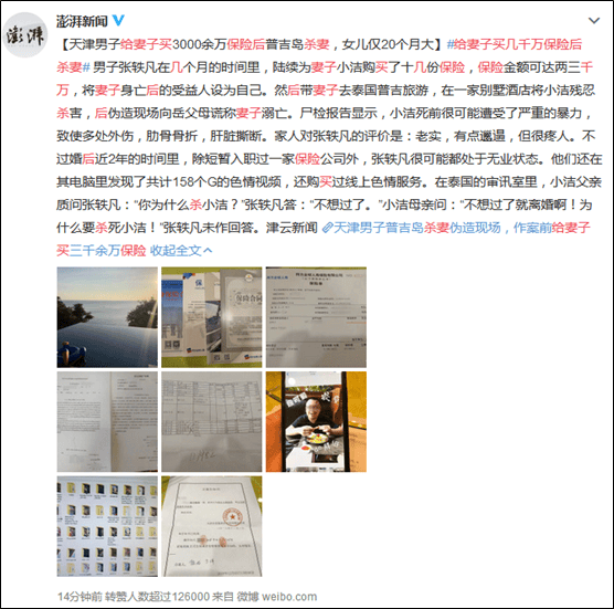 天津男子給妻子買3000萬保險後普吉島殺妻,家人對他的印象是:老實_風聞