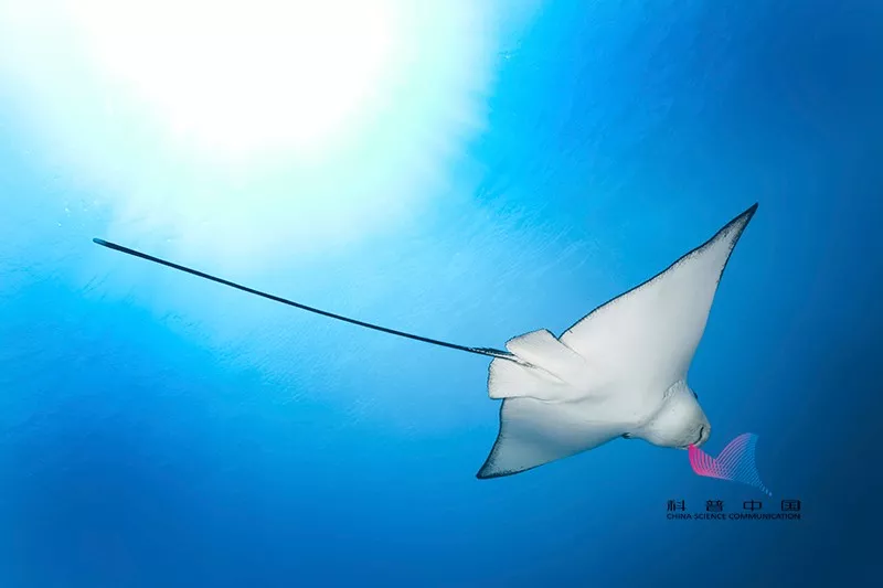 蝠鱝是一種原始的軟骨魚類,在地球上已經存活了超過1億年。即便不加特效也科幻味十足,它扁平的身體曳着一條纖細的鞭尾,頭兩側的頭鰭如兔子耳朵,很像外星生物,因此被漁民稱之為“魔鬼魚”。