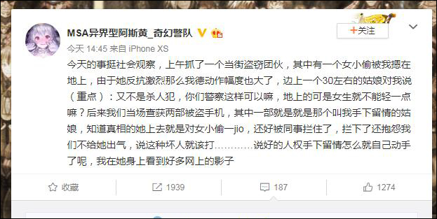 看到這件事後想起了風聞的這篇帖子《過於真實:警察抓小偷被説太暴力 結果偷的就是這名路人的手機》。