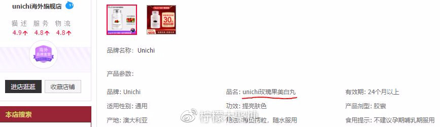 首先,名字裏並沒有美白丸三個字,這一點我認為Unichi應該給一個合理的解釋,憑什麼到了國內旗艦店就有了呢?