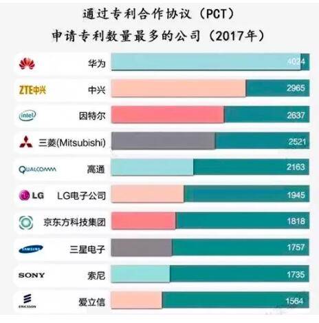 華為,2017年申請的專利高達4024個!遙遙領先於其他公司。
